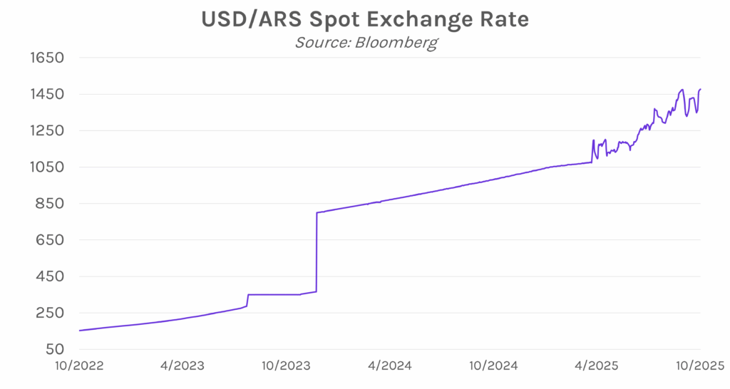 US and Argentina sign $20 billion currency swap deal. The Central Bank of Argentina announced today that it signed a $20 billion currency swap line with the US in an effort to stabilize its economy. The deal comes as US Treasury Secretary Bessent has been working closely with Argentina to restore financial stability, as the US has been buying pesos over the past few weeks, and a debt facility is in the works. The peso rose in the immediate aftermath of the announcement, though price action quickly reversed course as the US Treasury has not yet released its own statement on the deal and Argentina’s announcement lacked clarity on specific details. The peso closed the day above 1,477 per USD, well below October’s strongest level of 1,349 per USD.