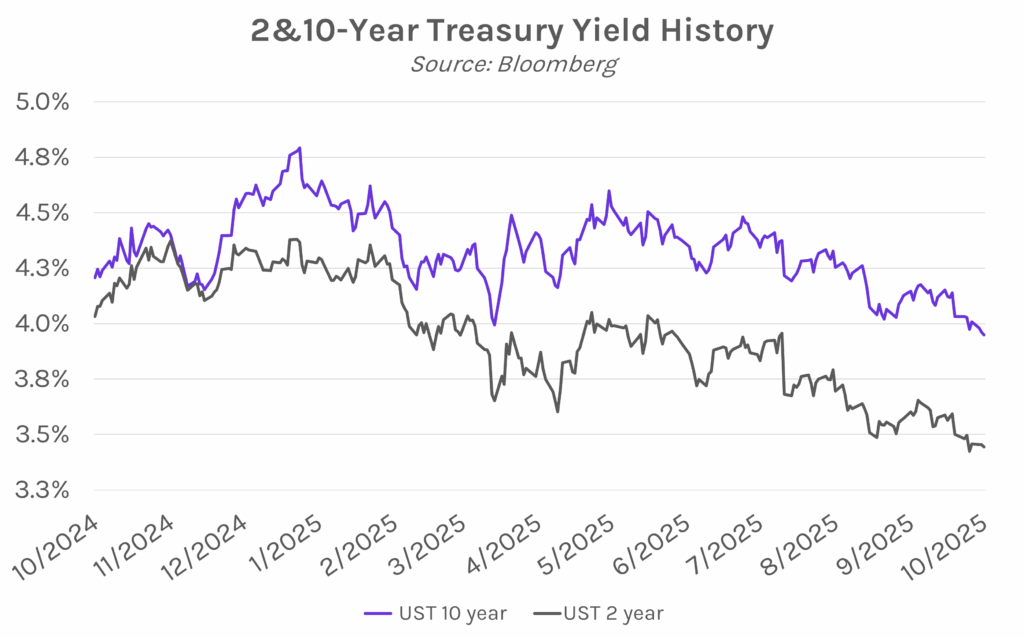 Daily Market Color October 22, 2025Renewed Fears of China Trade War Yields move lower as trade worries reemerge. UST yields rose ~1 bp to intraday highs this morning, but reversed course in the afternoon on reports that the Trump Administration is considering restrictions on software exports to China. Rates declined ~2 bps in the immediate aftermath of the news and closed 1 bp lower across the curve. 2-year and 10-year yields are now at 3.44% and 3.95%, respectively. Meanwhile, the S&P 500 declined 0.53% while the NASDAQ fell 0.93% due to concerns about US-China relations. White House still weighing trade war escalations with China. New reports today say the Trump Administration is still considering possible curbs of software-powered exports to China. The move would be a dramatic escalation as trade tensions between the two nations have just recently calmed, following tariff threats from both countries last week. While President Trump’s callout of “critical software” is vague, restricting shipments of goods that either contain or were produced using US software would include anything from laptops to jet engines. Administration officials familiar with the matter said that some voices in the White House oppose drastic escalation measures with China and fear causing harm to the US economy. Others believe President Trump may threaten such measures but not go so far as to implement them, as with the previously threatened 100% tariff, which reportedly remains on the table but hasn’t moved forward. ADP Research no longer providing data to the Fed. According to a person familiar with the matter, ADP Research, a payroll services firm, has stopped sharing its private-sector employment data with the Fed. It’s not clear what led to the decision for ADP to stop providing its services, as the company has worked with the Fed for the past few years. This comes as private data is more important than ever to the Fed, with government data releases paused due to the government shutdown. ADP employment data released on October 1st showed a sharp decline in private sector hiring, missing expectations by over 80k and causing yields to fall 6 bps in the aftermath.