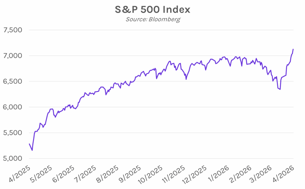 Yields plummet as Strait of Hormuz reopens. Treasury yields plunged ~6 bps this morning on news that the Strait of Hormuz reopened to commercial vessels. Though the US and Iran still have not reached an agreement, the reopening of the strait provided relief for energy markets and fueled optimism heading into continued negotiations this weekend. Yields closed 5-7 bps lower across the curve, with the 2-year yield at 3.71% (down 9 bps on the week) and the 10-year yield at 4.25% (down 7 bps on the week). Meanwhile, equities soared further, with the S&P 500 up 1.20% to close at 7,126.06, marking an all-time high for the third consecutive day.