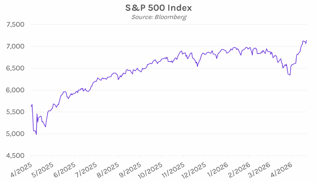 Yields rise on ceasefire extension. Markets turned risk-on today amid the indefinite Iran ceasefire extension and strong corporate earnings results. The 2-year yield closed 2 bps higher at 3.80%, the 10-year yield closed 1bp higher at 4.31%, and the 30-year yield closed nearly flat at 4.90%. Meanwhile, equities soared, with the S&P 500 closing 1.05% higher at a record 7,137.90 and the NASDAQ closing 1.64% higher at 24,657.57. Bitcoin climbed nearly 4% and is now trading around $78,500, its highest level since early February.