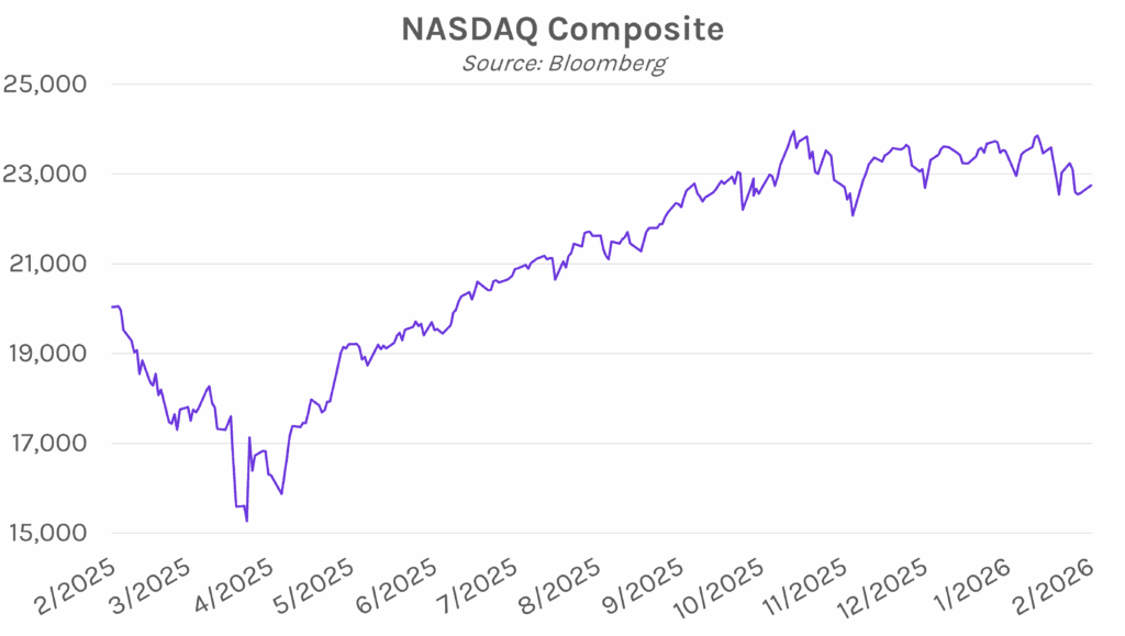 Yields climb on strong data, FOMC minutes. Treasury yields rose across the curve today, with the move primarily driven by better-than-expected durable goods data and industrial production that saw the fastest growth pace in nearly a year. Hawkish January FOMC meeting minutes also contributed, with some officials open to rate hikes if inflation remains elevated. Yields closed 2-3 bps higher across the curve, with the 2-year yield at 3.46% and the 10-year yield at 4.08%. Meanwhile, equities rallied as the strong economic data soothed AI jitters, with the S&P 500 and NASDAQ up 0.56% and 0.78%, respectively.
