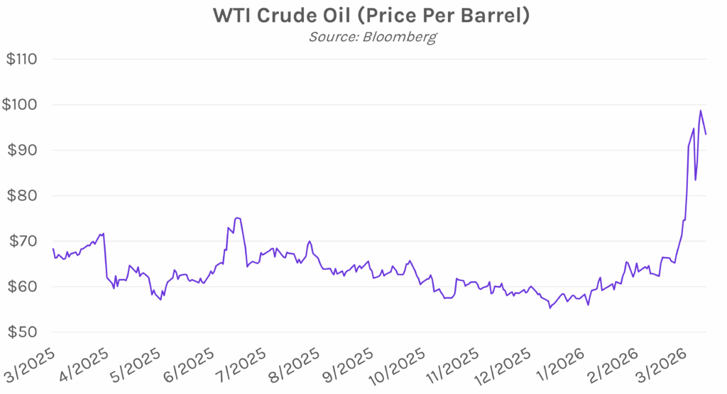Yields fall on easing inflation concerns. Treasury yields declined alongside sliding oil prices today on hopes that the Strait of Hormuz will reopen to tankers and news that more emergency oil stockpiles could be released. Yields closed 4-6 bps lower across the curve, with the 2-year yield at 3.67% and the 10-year yield at 4.22%. WTI closed at $93.50 per barrel after surpassing the $100 price level last week. Meanwhile, equities rose today, with the S&P 500 and NASDAQ closing 1.01% and 1.22% higher, respectively.