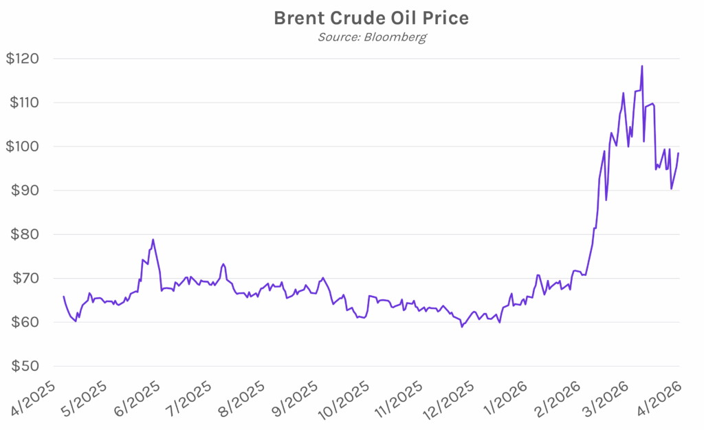 Yields rise with US-Iran talks on hold. Treasury yields climbed today after Vice President JD Vance cancelled his trip to Pakistan for negotiations, though the move partially reversed course on news that that President Trump extended the ceasefire agreement. The 2-year yield closed 6 bps higher at 3.78% while the 10-year yield closed 4 bps higher at 4.29%. Equities slid alongside Treasurys, with the S&P 500 and NASDAQ closing 0.63% and 0.59% lower, respectively. Meanwhile, oil rose, with Brent crude futures now trading near $99 per barrel, well above last week’s close of $90.38.