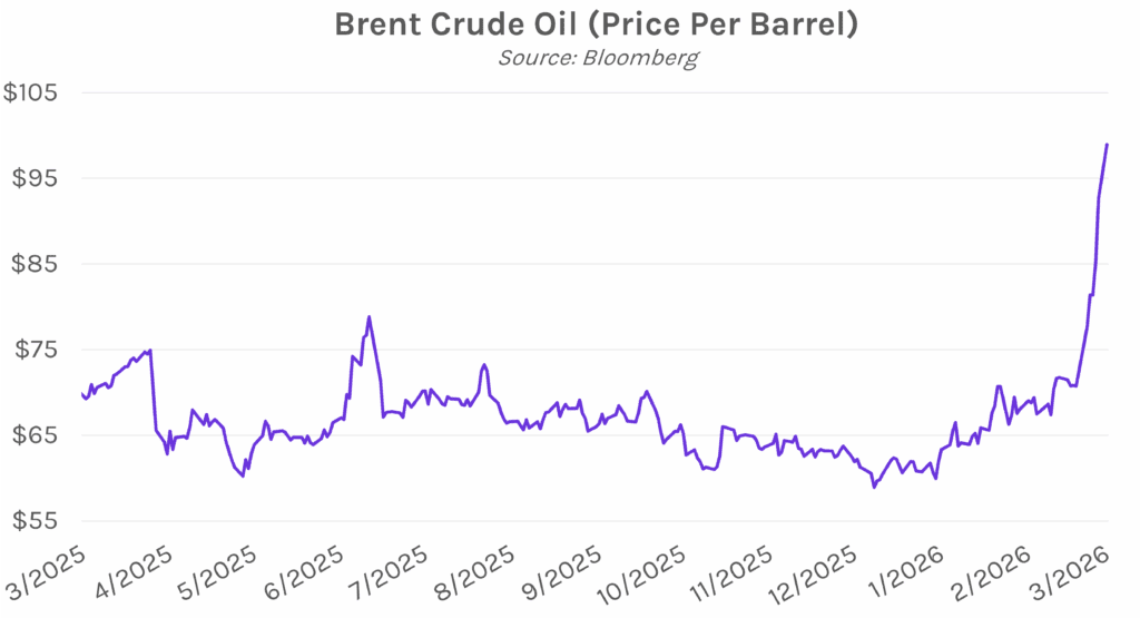 Oil prices pare gains after G-7, Trump quell concerns. Brent crude, the global oil benchmark, hit nearly $120 per barrel in overnight trading before closing below $90 per barrel. The price reversal came after the Group of Seven Finance Ministers said they would take “all necessary measures, including using strategic reserves, to stabilize the market,” though they won’t do so just yet. The move was also fueled by optimism from President Trump, who said that the war “is very complete, pretty much” after previously warning that the conflict could last four to five weeks. Oil prices remain elevated, having been around $72 before the initial US-Israeli attacks just over a week ago.