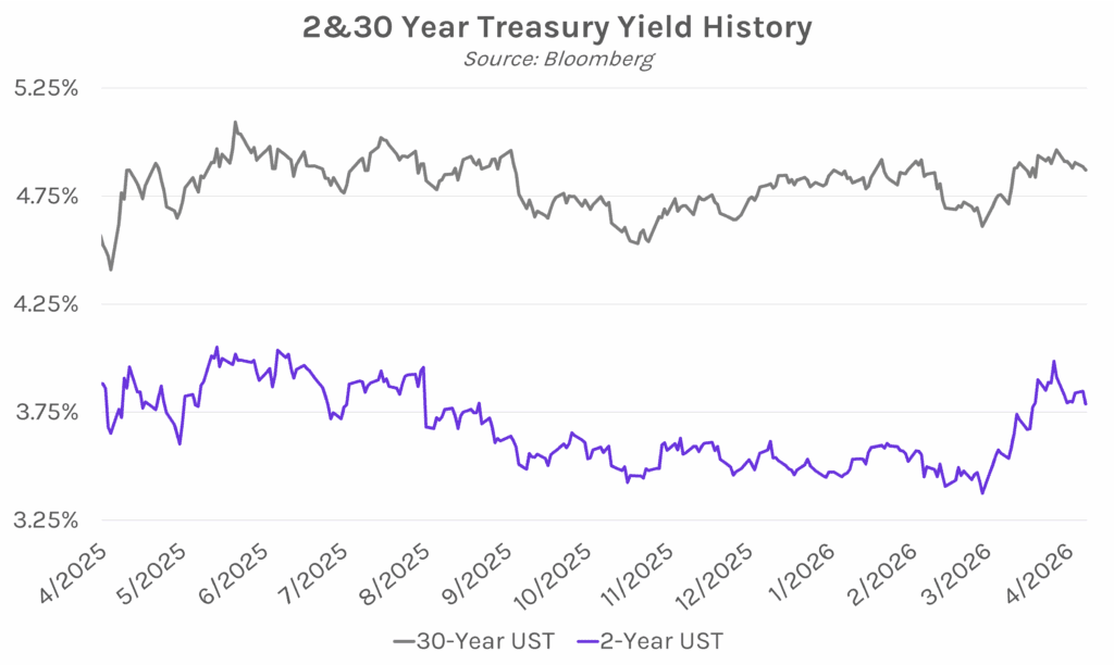 Fed’s Williams sees underlying price pressures remaining steady. New York Fed President John Williams said, “the story hasn’t changed very much” for underlying price pressures on inflation, though the Iran War has led him to decrease his forecast for economic growth this year and increase his headline inflation expectation. Consequentially, Williams is comfortable leaving policy rates unchanged in the near term, explaining that “monetary policy is exactly where it needs to be, and then we can respond if the situation changes.” Last week’s surprisingly strong March labor data adds to Williams’ confidence that policy rates are well positioned, as it is a sign that the job market is “much more stable now, definitely not a labor market that is weakening.”