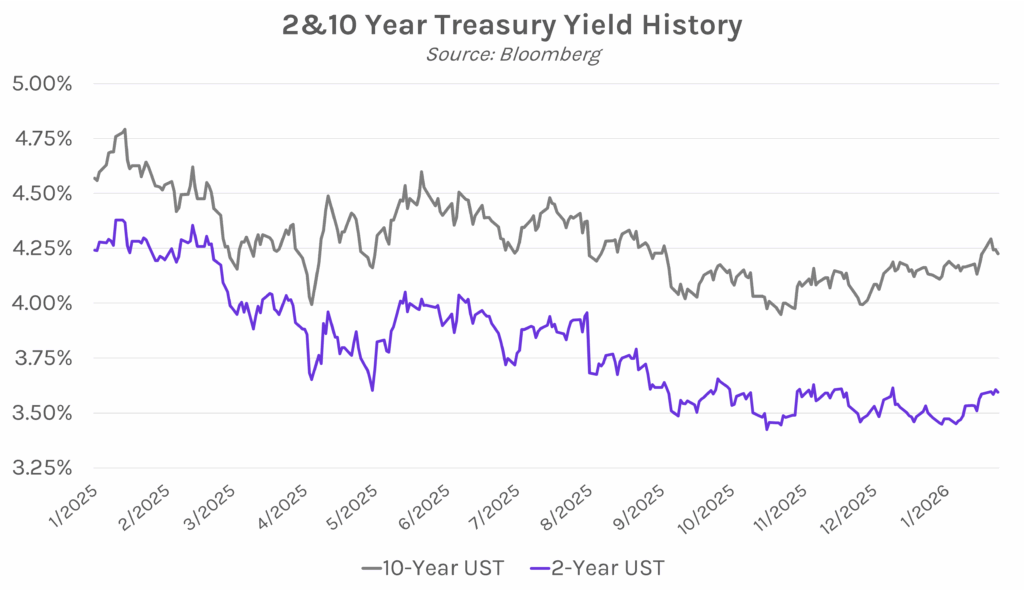 Yields close nearly unchanged despite unexpected rise in consumer sentiment. Treasury yields traded in a 2-4 bp range today, as steady PMI data and better-than-anticipated University of Michigan consumer sentiment data failed to sway markets. The 2-year yield closed 1bp lower at 3.59% and the 10-year yield closed 2 bps lower at 4.23%, both nearly flat on the week. Meanwhile, the NASDAQ closed 0.28% higher, led by gains from Nvidia as China told firms that they can prepare orders for H200 chips. Oil also climbed today, as brent rose above $65 a barrel and WTI above $61, on near-term supply disruptions and geopolitical risks in the Middle East.