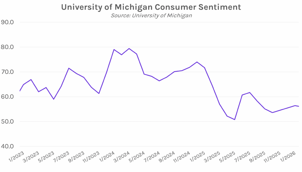 US consumer sentiment hits a five-month high. The University of Michigan consumer sentiment came in at 56.4, a five-month high and the largest MoM increase since June (3.5 points). Consumer sentiment saw broad gains across income, age, education, and political affiliation. However, survey director Joanne Hsu said, “national sentiment remains more than 20% below a year ago, as consumers continue to report pressures on their purchasing power stemming from high prices and the prospect of weakening labor markets.” Despite this frustration, data earlier this week showed that consumer spending remains a resilient driver of the US economy.