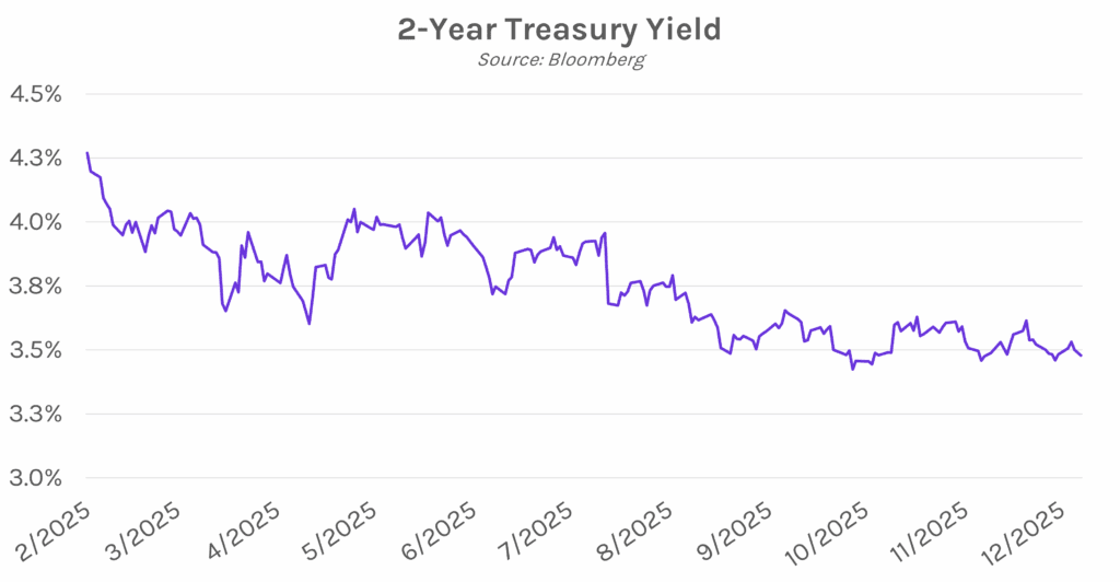Treasuries steady post-holiday, on pace for best year since 2020. Yield volatility was muted in a quiet session today as markets returned from Christmas break. While on track to post a loss on the month, Treasuries are likely to deliver their strongest annual performance since 2020, supported by the Fed’s three rate cuts this year. Yields ultimately closed 1-2 bps lower across the curve, with the 2-year yield at 3.48% (no change on the week) and the 10-year at 4.13% (a 2 bp decline on the week). Meanwhile, equities edged slightly lower as investors look ahead to a potential ‘Santa Claus Rally’, referring to typical gains seen during the final five trading days of December and the first two sessions of the new year.